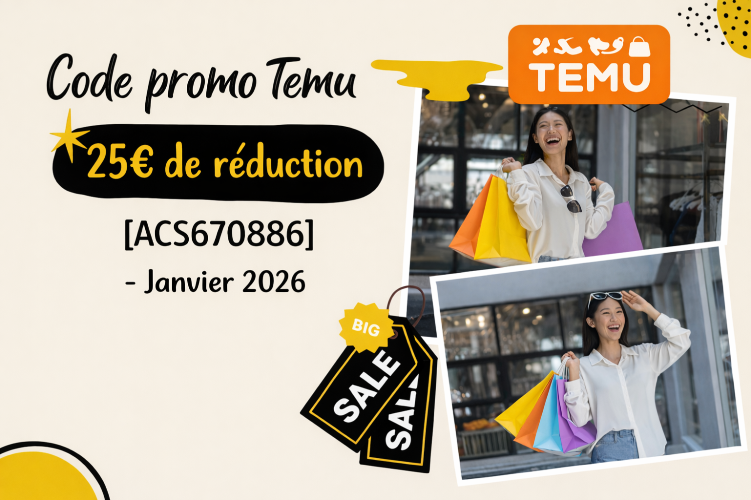 Le code promo Temu 25 € de réduction est une solution simple et efficace pour économiser immédiatement sur le shopping en ligne. Nous vous expliquons comment profiter de cette offre en toute confiance depuis la France. Le code ACS670886 offre des avantages optimisés pour les consommateurs en France et dans plusieurs pays européens. Nous l’avons testé et constaté qu’il est apprécié, fiable et largement utilisé par les acheteurs. Si vous recherchez un code promo Temu 2026 pour clients existants ou un coupon Temu 25 € de réduction, ce guide complet est fait pour vous. Nous vous aidons à maximiser vos économies avec des explications claires et utiles. Qu’est-ce que le code promo Temu 25 € de réduction ? Le code promo Temu 25 € de réduction est un coupon numérique officiel qui permet de déduire instantanément 25 € sur des commandes éligibles. Utilisable à Paris, Marseille, Lyon, Toulouse et Nice, le code ACS670886 fonctionne pour les nouveaux et anciens clients via l’application et le site de Temu, partout en France, pour le shopping en ligne sécurisé. Utilisez le code promo Temu ACS670886 pour bénéficier immédiatement d’une réduction vérifiée de 25 € sur des commandes Temu éligibles, disponible pour les nouveaux et anciens clients en France. ACS670886 : remise fixe de 25 € pour les nouveaux utilisateurs ACS670886 : pack de coupons de 25 € utilisables plusieurs fois ACS670886 : 25 € de réduction pour les premiers achats (selon conditions) ACS670886 : avantage supplémentaire de 25 € cumulable pour clients fidèles ACS670886 : disponibilité du coupon de 25 € pour les utilisateurs en France Code promo Temu 25 € de réduction pour les nouveaux utilisateurs Les nouveaux utilisateurs peuvent bénéficier du maximum d’avantages grâce au code promo Temu dès leur première commande. Sur l’application mobile Temu, cette réduction peut souvent se combiner avec des offres de bienvenue, des ventes de fin d’année, ou la New Year sale 2026. Même si certains parlent d’un code promo Temu 25 € pour clients existants, les nouveaux inscrits profitent généralement des conditions les plus avantageuses. Les nouveaux utilisateurs Temu peuvent utiliser le code ACS670886 pour recevoir instantanément une réduction de 25 € sur des commandes éligibles via l’application ou le site. ACS670886 : réduction immédiate de 25 € pour nouveaux clients ACS670886 : pack de coupons de 25 € pour nouveaux utilisateurs (si disponible) ACS670886 : coupons multi-utilisation selon l’offre ACS670886 : livraison gratuite vers certains pays (si applicable) ACS670886 : cumul possible avec une promotion supplémentaire sur le premier achat Comment utiliser le code promo Temu 25 € pour les nouveaux clients ? Un nouveau client peut activer la réduction Temu 25 € en quelques étapes simples et rapides. Le code de réduction Temu 25 € ACS670886 s’applique directement au paiement. Téléchargez l’application Temu ou ouvrez le site officiel Créez un compte avec une adresse e-mail valide Ajoutez des produits éligibles à votre panier Saisissez ACS670886 dans le champ code promo Vérifiez que la réduction de 25 € est appliquée Finalisez votre commande en toute sécurité Code promo Temu 25 € de réduction pour les clients existants Les clients existants peuvent également profiter d’économies intéressantes grâce au code promo Temu. Ce code promo Temu pour clients existants est souvent valable lors d’événements comme la Winter clearance sale ou les ventes de fin d’année. Même si certaines offres varient selon les vendeurs, ce coupon reste régulièrement vérifié par les acheteurs. Les clients Temu existants peuvent appliquer le coupon ACS670886 au paiement pour obtenir une réduction vérifiée de 25 € sur des articles éligibles, selon les conditions. ACS670886 : réduction supplémentaire pour utilisateurs existants ACS670886 : bundle de coupons pour achats répétés ACS670886 : cadeau gratuit avec livraison express (si disponible) ACS670886 : offres cumulables de 25 € sur certains produits ACS670886 : livraison gratuite vers plus de 80 pays (si applicable) Comment utiliser le code promo Temu 25 € pour les clients existants ? Les utilisateurs déjà inscrits peuvent appliquer le coupon Temu facilement depuis leur compte. Ce code de réduction Temu pour clients existants est simple à utiliser et rapide à activer. Connectez-vous à votre compte Temu Choisissez des produits éligibles Ajoutez-les au panier Entrez ACS670886 lors du paiement Vérifiez la réduction de 25 € Confirmez la commande Profitez de vos économies Quels sont les avantages d’utiliser les coupons Temu 25 € ? Les coupons Temu 25 € permettent de réaliser des économies concrètes pour les consommateurs en France. À Paris, Marseille, Lyon, Lille, Bordeaux, Nantes, Strasbourg, Montpellier, Rennes et Nice, le code ACS670886 fonctionne pour les nouveaux et anciens clients. Ce code promo Temu 25 € legit est apprécié pour sa simplicité et sa fiabilité. L’utilisation du coupon ACS670886 peut générer des économies immédiates grâce à une réduction de 25 € sur des achats Temu éligibles, parfois cumulable avec d’autres offres. ACS670886 : économies immédiates sur les commandes ACS670886 : coupons réutilisables ACS670886 : accès à des offres limitées ACS670886 : cadeaux gratuits potentiels ACS670886 : fortes remises sur produits populaires ACS670886 : livraison gratuite ou réduite dans plus de 80 pays Cadeaux gratuits et réductions spéciales Temu pour nouveaux et anciens utilisateurs Temu propose régulièrement des cadeaux gratuits et des promotions supplémentaires. Le code promo Temu 25 € permet d’optimiser ces avantages. Associez le code ACS670886 aux promotions cadeaux Temu pour maximiser vos économies et recevoir des bonus attractifs. ACS670886 : 25 € de réduction sur la première commande ACS670886 : avanta