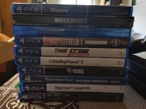 Zdravím, Mám obyčejné PS4 ale jsem ochotný popřípadě něco doplatit. Viz text inzerstu: Dobrý den, prodám své PS4 500gb bez záruky. Konzole funguje naprosto bez problémů a jsou k ní 2 ovladače (Black a Gold) a také Gold Headset (7.1 sluchátka) ke konzoli přidám také hry viz foto. Samozřejmostí je HDMI kabel, USB a napájení. K PS je i originální krabice, která bohužel na půdě navlhla, zažila už lepší časy. V případě zájmu prosím o kontakt na telefonu nebo msng. Nebráním se osobnímu předání (mohu konzoli přivést) a nebo odesláním přes kuryra. Hry: PvZ GW 2 Dreams Watch Dogs 2 Battlefield 1 The Crew Wildlands Little Big planet 3 Prison Architect Naruto Ultimate Ninja Storm 3 No Mans sky Rocket League Diablo 3 Raymen Legends