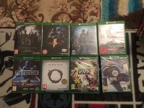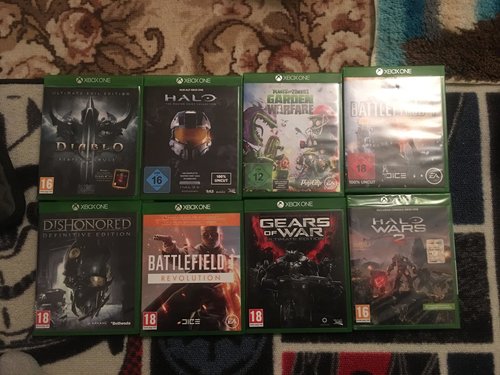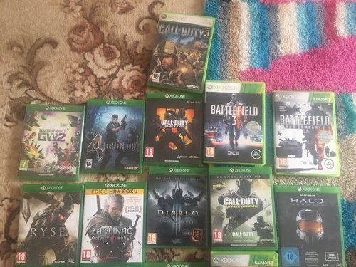 Zdravím VymenimXbox One S 1TB kupován dne 2.9.2018 ( účtenku originál krabici mam takže necele dva roky záruka ) vše co bylo v krabici dostanete - Ovladač , kabeláž , konzole , manuály , a potom hry všechny jsou na fotce
