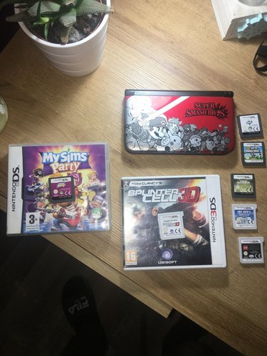 Ahoj prodám Nintendo 3DS XL super smash bros edice. Drobné oděrky jinak naprosto v pořádku, Včetně nabiječky a 9 her. Bohužel chybí dotekové pero. Hry: My sims party , Splinter Cell 3D , The Sims 3 , Tomb Raider underworld , Doba Ledová 4 , Lego Piráti z Karibiku , Super Smash Bros , New super Mario bros , New super Mario bros 2 . Cenu nabídněte (spěchá) určitě se domluvíme.