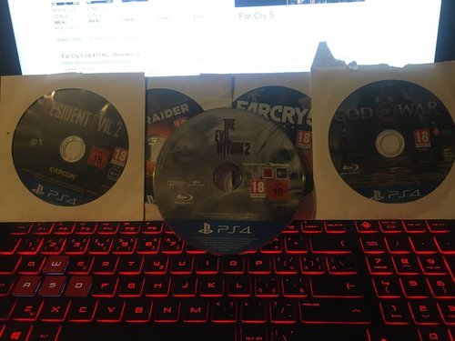 Zdravím mám tady pár her na prodej. 1. Resident Evil 2 remake cena - 500 kč 2. God of War cena - 500 kč 3. Tomb Raider Cena 500 kč 4. Far Cry 5 cena 500 kč 5. The Evil Within 2 cena 500 kč Hry jsou bez krabiček , při koupi všech naráz Pátá zdarma. Cena za všechny 2000,- kč jinak platí ceny psané u každé.