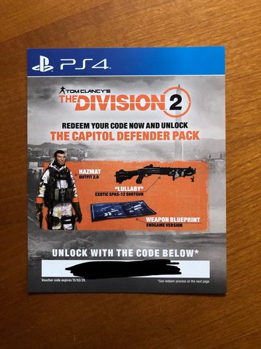 The Division 2 (Standard Edition) + The Capitol Defender Pack. Pouze rozbaleno, sesly se mi tu 2 kusy. Predani: Kladno, Praha (Zlicin) Cena: 1250 CZK (posta mozna po platbe predem na ucet)