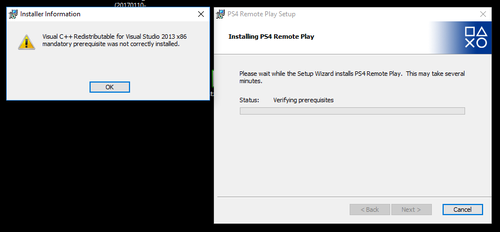 Ahoj, jelikož mne nebaví si tahat sem tam konzoli mezi domovem a prací, chtěl bych vyzkoušet Remote Play mezi PS4 a PC. V práci mám PC s Win10, ale neprojdu přes instalací, skončím na hlášce, viz screenshot. Nevíte někdo, co přesně je potřeba doinstalovat, abych instalaci Remote dokončil? Díky
