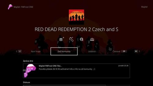 Zdravím Plánujete hrát RDR2? Přidejte se na PS do Red Dead Redemption 2 Czech and Slovakia komunity :-) na zdi najdete aktuální info o hře a spoluhráče na hraní. Po zapnutí Red Dead Online plánujeme hrát na CZ/SK serveru