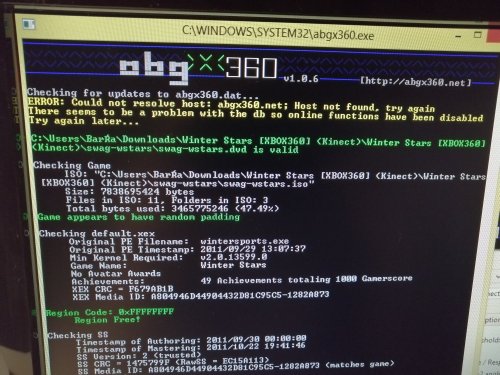 4. Prosím o radu, stáhnu hru a chci ji projet v abgx360, vyskočí mi chybová hláška viz foto. Hru vypálí, ale píše mi to při spuštění v xboxu unreable disc. Díky moc za pomoc.