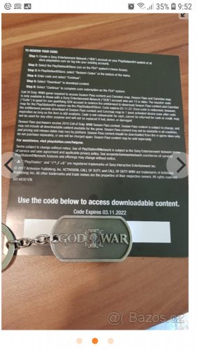 8. Prodam kod na stazeni vsech 4DLC ke hre Call of duty na PS4. Puvodni cena 1200.- a pridam zdarma kod na stazeni divize a zbrane do hry. Odeslani kodu v sms nebo emailem. Cena 150,-