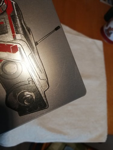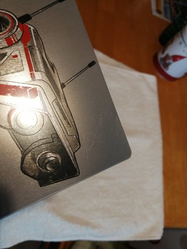 18. Steelbook je v poradku, neni nikde praskly apod (viz foto), jedine co ma (a co se dost blbe foti) jsou sem tam jemne vlasecnicove skrabanecky viditelne pod uhlem. Bohuzel to je chyba vyroby / distribuce, kdyz jsou naskladany v krabici jeden vedle druheho... Ale samozrejme jsem videl i horsi. Zde to skoro neni videt. Pri kolmem pohledu vubec. Proto jsem se to take snazit alespon nejak vyfotit. 250 Kc Jinak osobni odber je mozny v Brne, pripadne poslu jako doporucenou zasilku v bublinkove obalce za 60 Kc (s platbou predem na ucet)