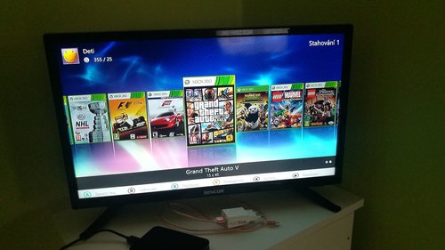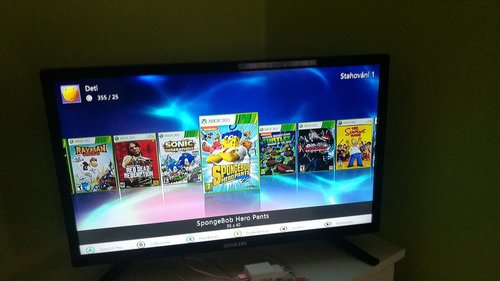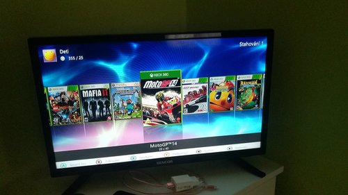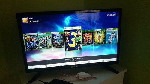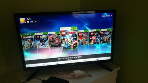 Konzole XBOX 360 SLIM, verze 4GB s dokoupeným originálním interním diskem 320GB. Konzole má RGH úpravu - lze tedy hrát stažené hry. Pevný disk je plný her různých žánrů např. Lego, Just Dance pro Kinect atd. Součástí je velké příslušenství - 2x bezdrát gamepad + 1x drátový pro malé ruce, 4x DVD s hrami (je možné že jeden disk z levého sloupce pro Kinect nefunguje - již si nepamatuji přesně, ostatní OK) hra Skylanders obsahuje portál do USB portu včetně 3 figurek, 2 mikrofony orig Microsoft (na pevném disku se nachází karaoke hry), držák na Kinect na TV. Vše je funkční ale již dlouhou dobu nepoužíváno, syn používá pouze PC.