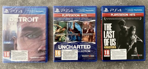 2. Prodám následující 3 hry: Detroit: Become Human - nerozbaleno - 400 Kč Uncharted: The Nathan Drake Collection - nerozbaleno - 200 Kč The Last of Us Remastered - rozbaleno, perfektní stav - 200 Kč Vše je samozřejmě CZ distribuce. Ideálně osobní předání v Praze, ale pošta je také mozná.