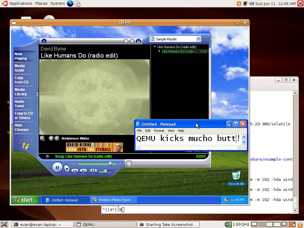 3. A new window should open running a virtual machine (emulation) of a X86 Processor which can Run XP